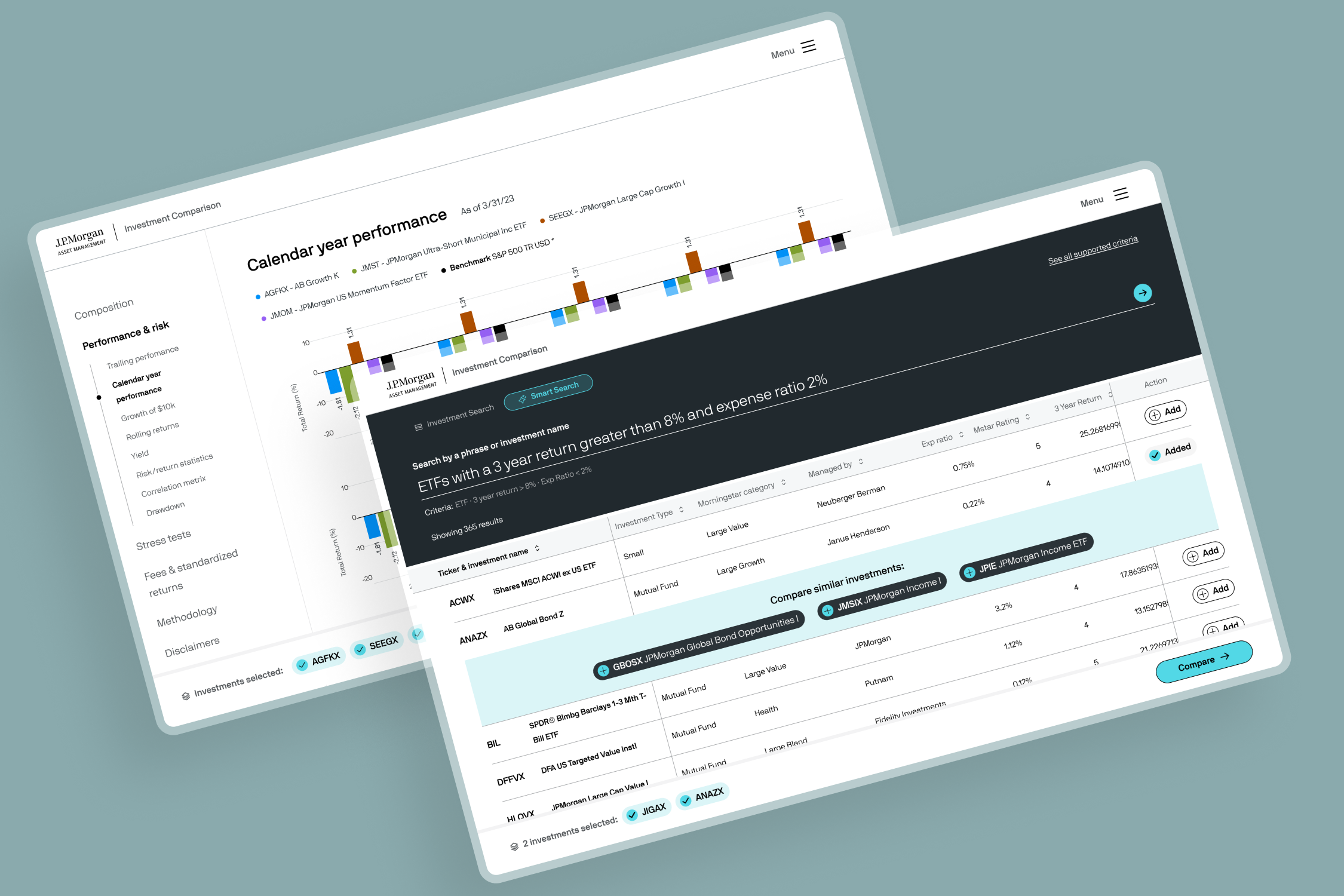 Optimizing for discovery & comparison of JPMorgan similar & out-performing products saw a 400% increase in users comparing & buying the products.